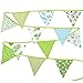 Whaline 12 Pcs Fabric Bunting Banner,11.8 Feet Double Sided Triangle Flags, Vintage Floral Design Party Bunting for Wedding Birthday Baby Shower Home Decoration (Green)